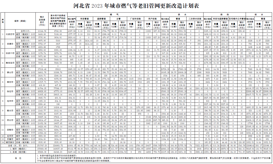 河北省城市燃气等老旧管网更新改造实施方案(2023-2025年)